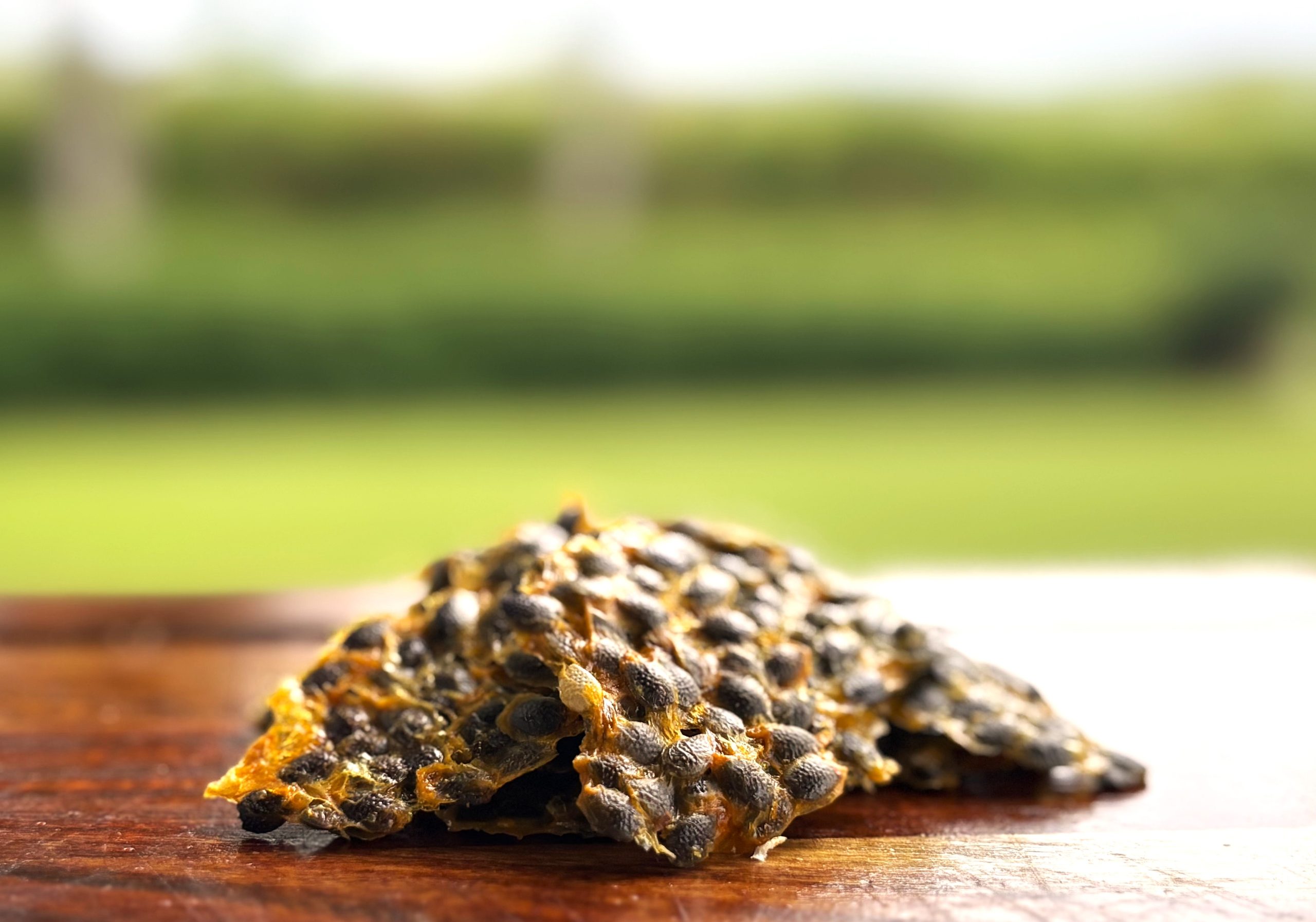 Australian local passionfruit that have been cut and the pulp dried without the use of any sulphur, sugar or preservatives. Passionfruit only.